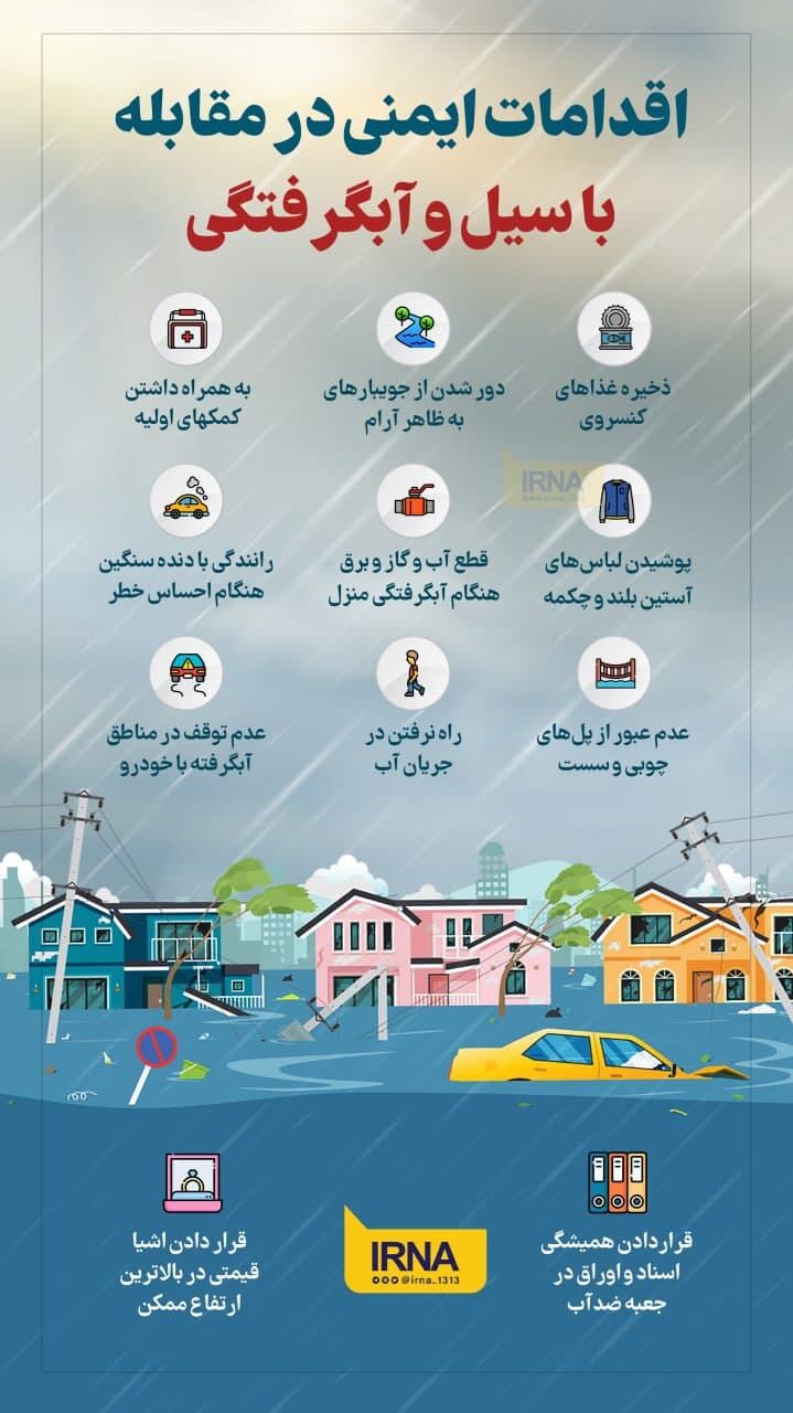 به گزارش پایگاه خبری حامیان سلامت و ایمنی نیروی کار به نقل از ایرنا ، اقدامات ایمنی در مقابله با سیل و آبگرفتگی را در این اینفوگرافیک ببینید.