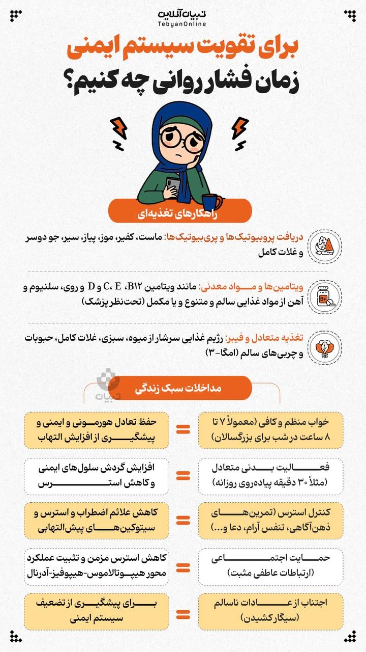 لطفا برای دانلود اینفوگرافیک “ برای تقویت سیستم ایمنی زمان فشار روانی چه کنیم؟ ” از لینک زیر استفاده نمایید.