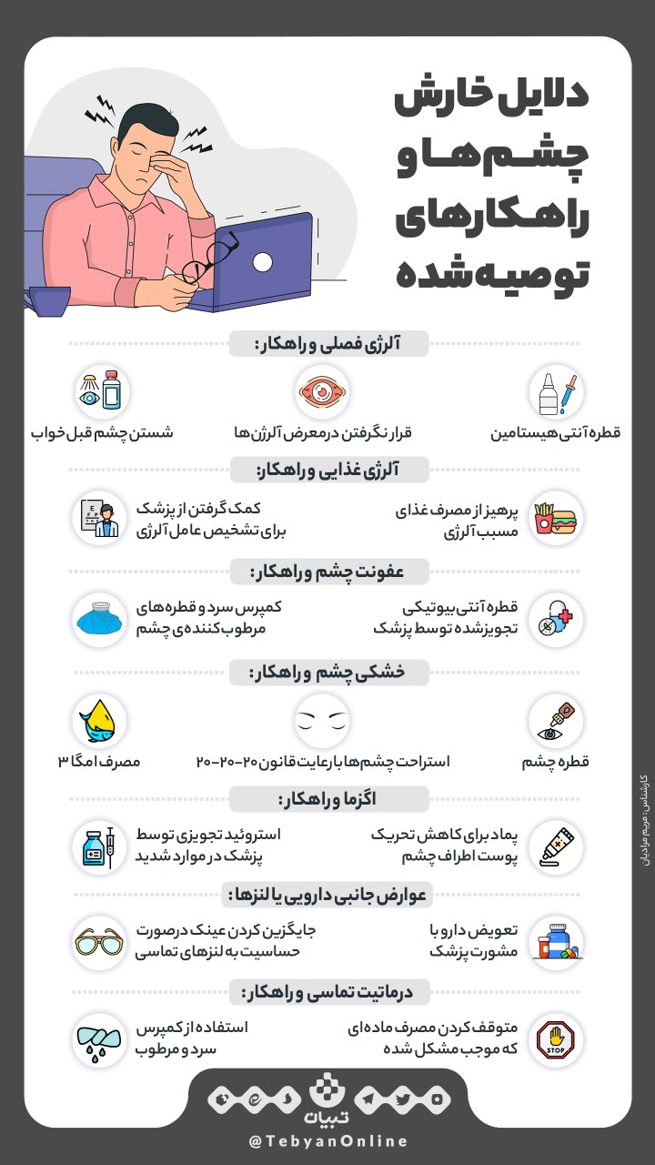 اینفوگرافیک/ دلایل خارش چشم‌ها و راهکارهای رفع آن