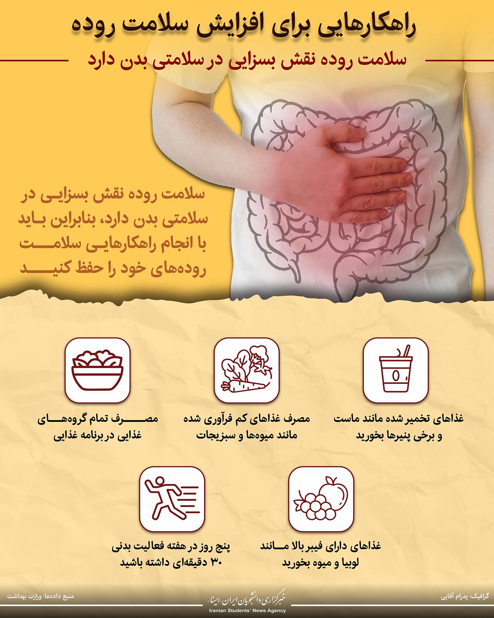 به گزارش پایگاه خبری حامیان سلامت و ایمنی نیروی کار به نقل از ایسنا ، سلامت روده نقش مهمی در سلامتی بدن دارد، بنابراین باید با انجام راهکارهایی سلامت رودههای خود را حفظ کنید. در این اینفوگرافیک پنج توصیه دفتر بهبود تغذیه جامعه وزارت بهداشت برای حفظ سلامت روده را مشاهده میکنید.