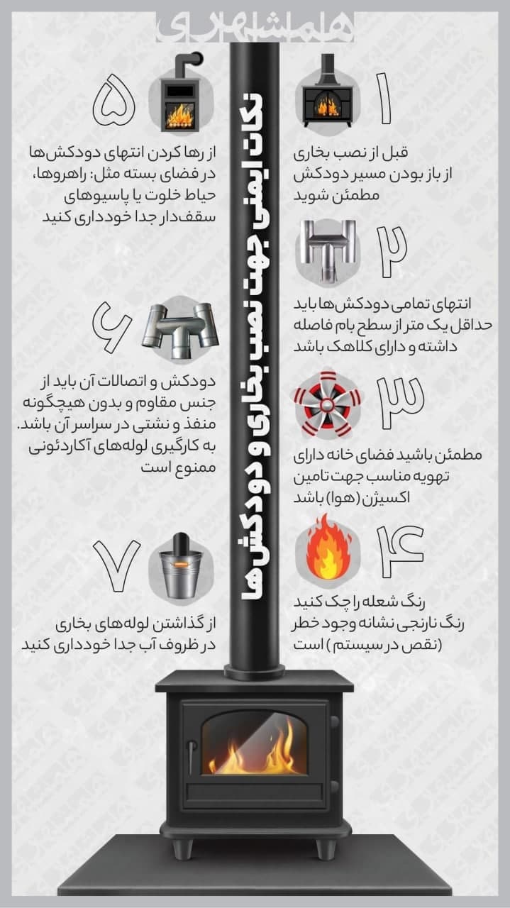 اینفوگرافیک / نکات ایمنی جهت نصب بخاری و دودکش‌ها