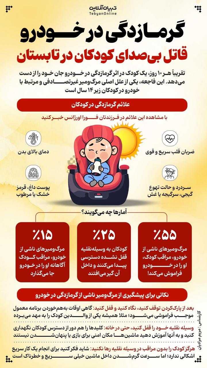 لطفا برای دانلود اینفوگرافیک “ گرمازدگی در خودرو قاتل بیصدای کودکان در تابستان ” از لینک زیر استفاده نمایید.