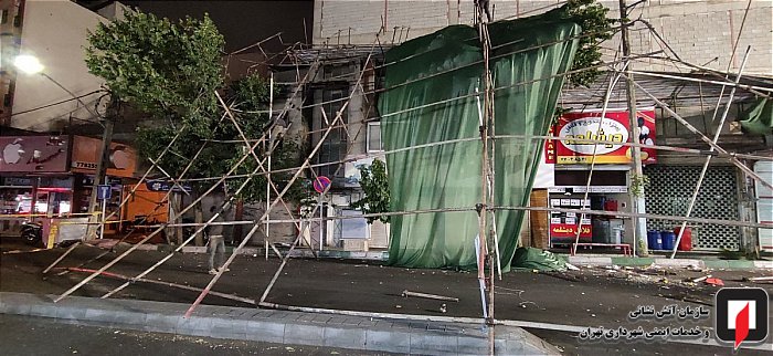 یدالله مددی مدیر منطقه شش عملیات آتش نشانی که در محل حادثه حضور یافته بود در این باره گفت: محل حادثه یک ساختمان هفت طبقه در حال ساخت بود که بر روی دیواره شرقی این ساختمان حجم زیادی داربست نصب شده بود و به علت باد و طوفان این داربست‌ها فرو ریخته و قسمتی از آنها خیابان را مسدود و قسمتی دیگر به صورت معلق و بسیار خطرناک قرار گرفته بود.