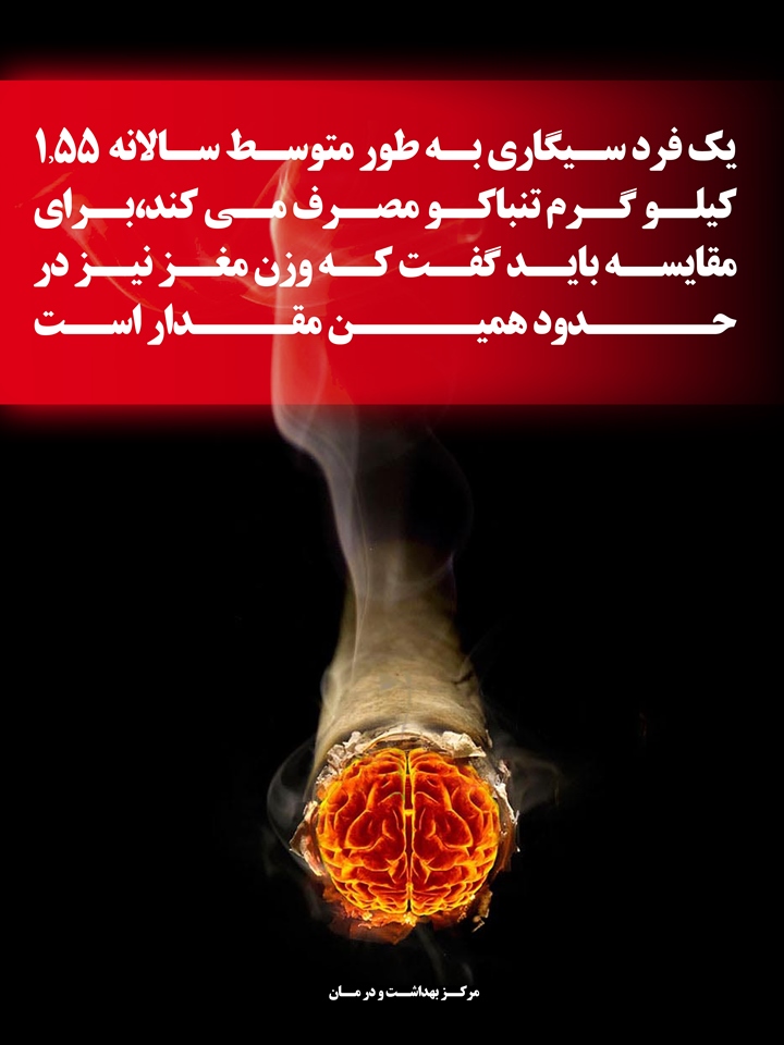 یک فرد سیگاری به طور متوسط سالانه ۱٬۵۵ کیلو گرم تنباکو مصرف می کند، برای مقایسه باید گفت که وزن مغز نیز در حدود همین مقدار است.